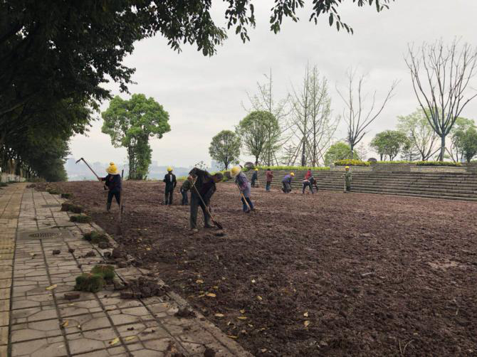 兩江建設(shè)公司組織100余工人 連續(xù)搶工兩江新區(qū)綠化工程