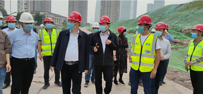 4月30日下午,重慶市江北嘴中央商務(wù)區(qū)投資集團(tuán)有限公司董事長(zhǎng)李寧一行到由重慶兩江新區(qū)建設(shè)有限公司承建的江北嘴中央商務(wù)區(qū)三洞橋民俗風(fēng)情街主體工程和江北嘴B01地塊項(xiàng)目平基土石方工程工地現(xiàn)場(chǎng)進(jìn)行實(shí)地調(diào)研。兩江建設(shè)公司董事長(zhǎng)盧明、總經(jīng)理李斌、副總經(jīng)理丁玉海陪同調(diào)研,各參建單位負(fù)責(zé)人參加。