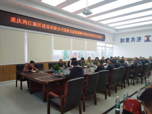 公司向萍副總經(jīng)理組織開展觀摩裝配式建筑施工工藝并召開10月份安全例會(huì)