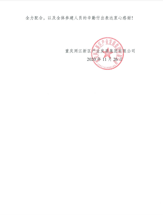 兩江建設(shè)公司再獲兩江產(chǎn)業(yè)集團(tuán)感謝信