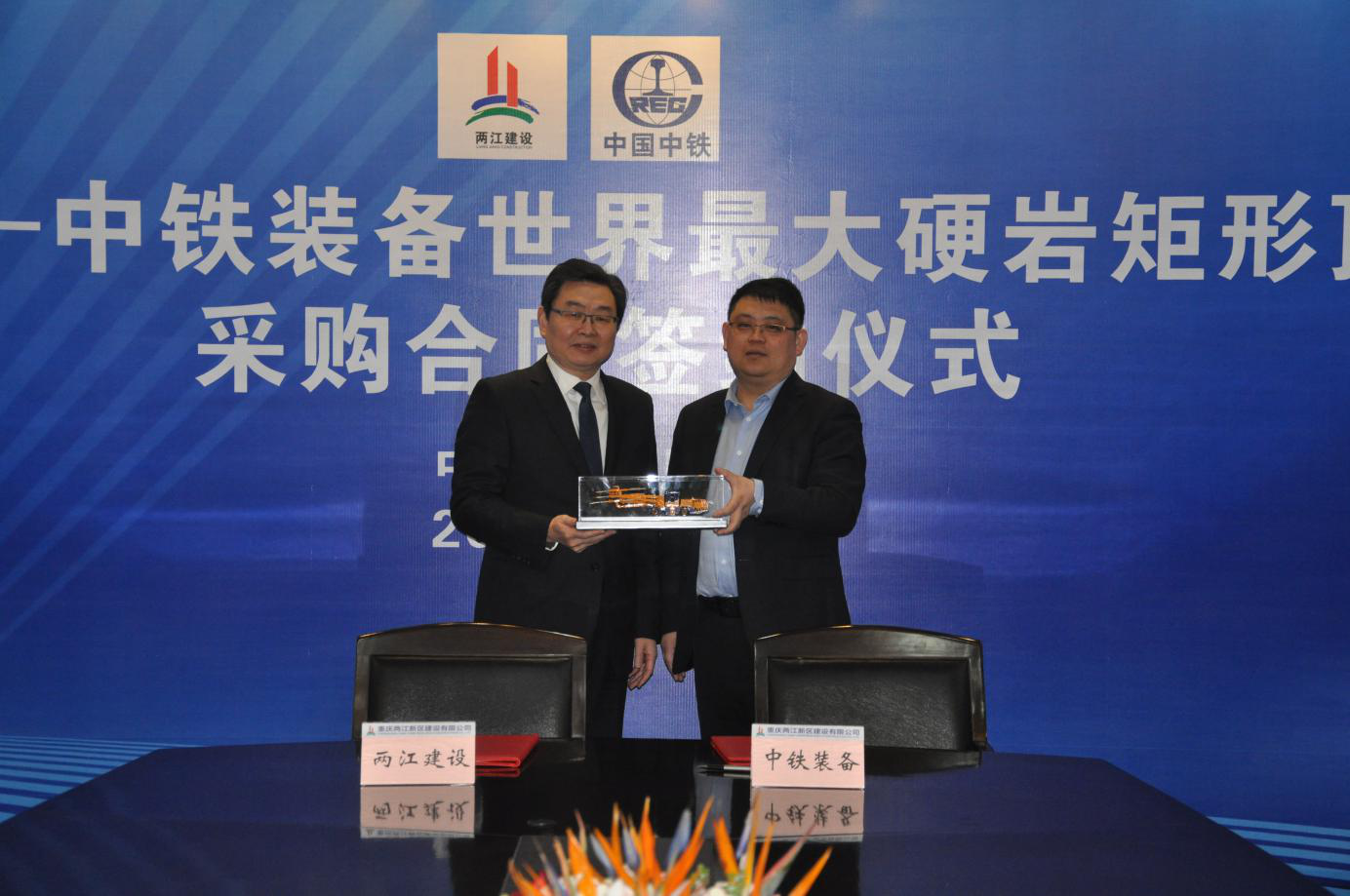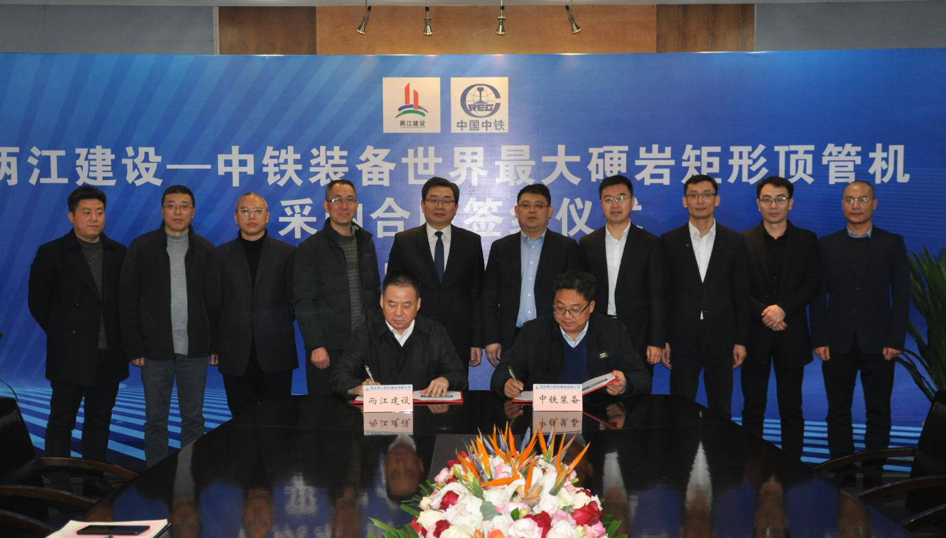 兩江建設(shè)公司與中鐵裝備舉行世界最大硬巖矩形頂管機采購合同簽約儀式