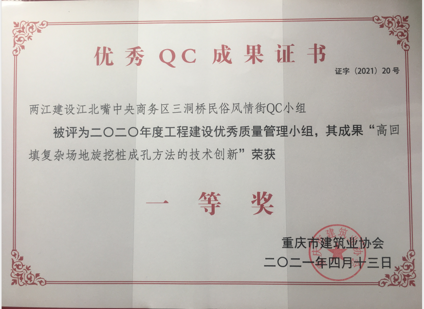 兩江建設公司榮獲重慶市2020年度工程建設質(zhì)量管理優(yōu)秀QC成果多項獎項