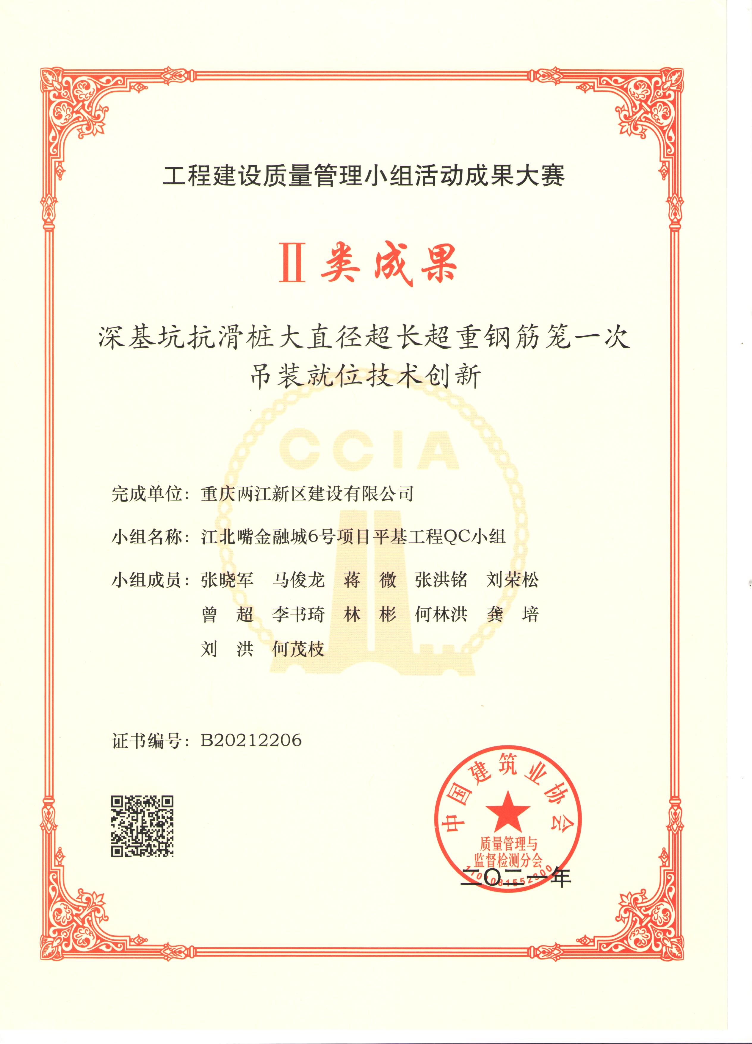 兩江建設(shè)公司首次榮獲全國(guó)工程建設(shè)質(zhì)量管理小組活動(dòng)成果大賽Ⅱ類成果獎(jiǎng)項(xiàng)