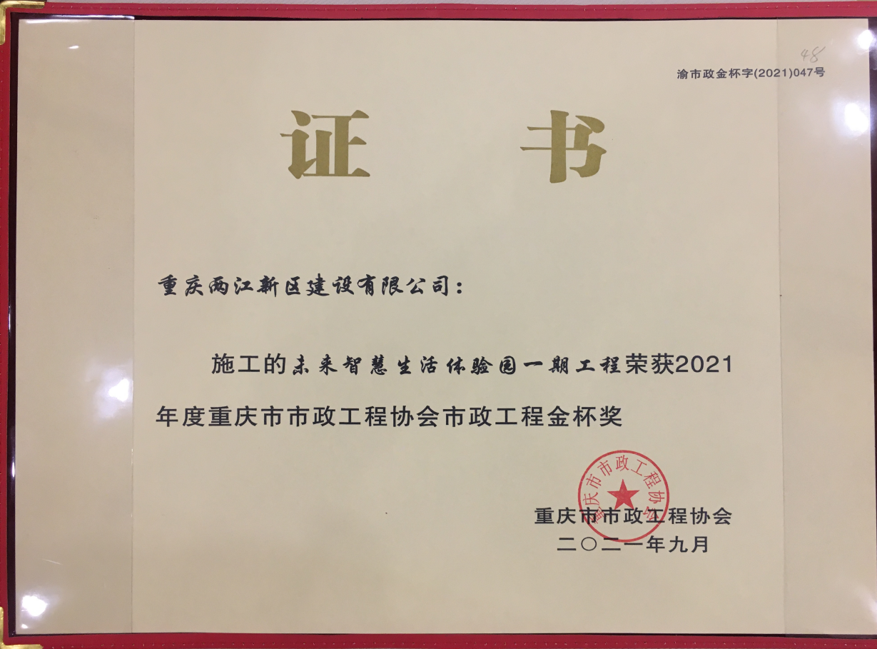 近日,由兩江建設(shè)公司承建的禮嘉未來智慧生活體驗(yàn)園一期項(xiàng)目工程榮獲2021年度重慶市市政工程最高獎(jiǎng)項(xiàng)“市政工程金杯獎(jiǎng)”。