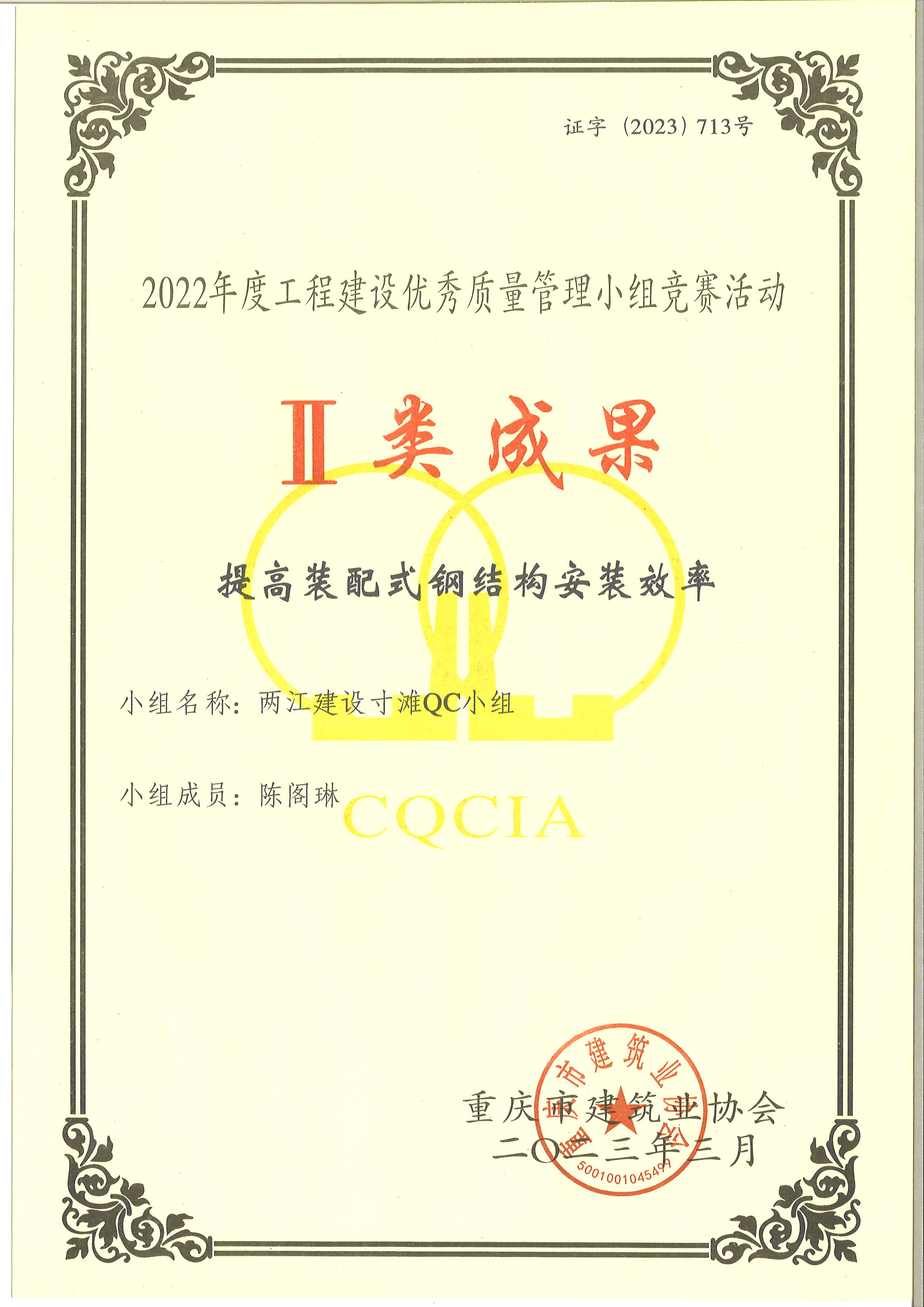 全國建設(shè)質(zhì)量管理小組活動成果大賽二類成果