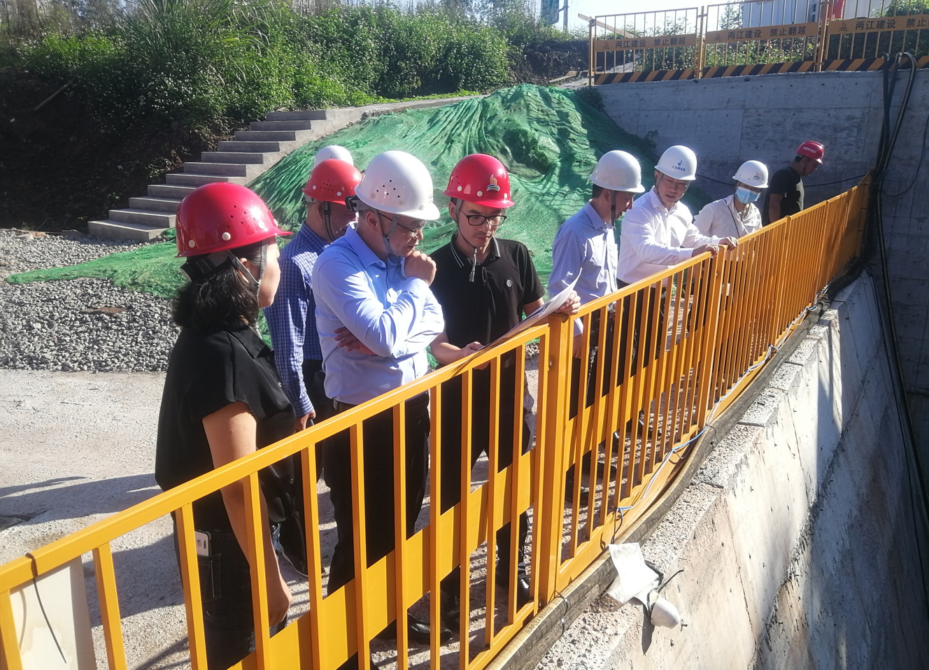 在項目現(xiàn)場,李寧董事長一行查看現(xiàn)了場設(shè)備的安裝調(diào)試及項目總體進展,并聽取了兩江建設(shè)公司項目負責(zé)人對項目的情況介紹。