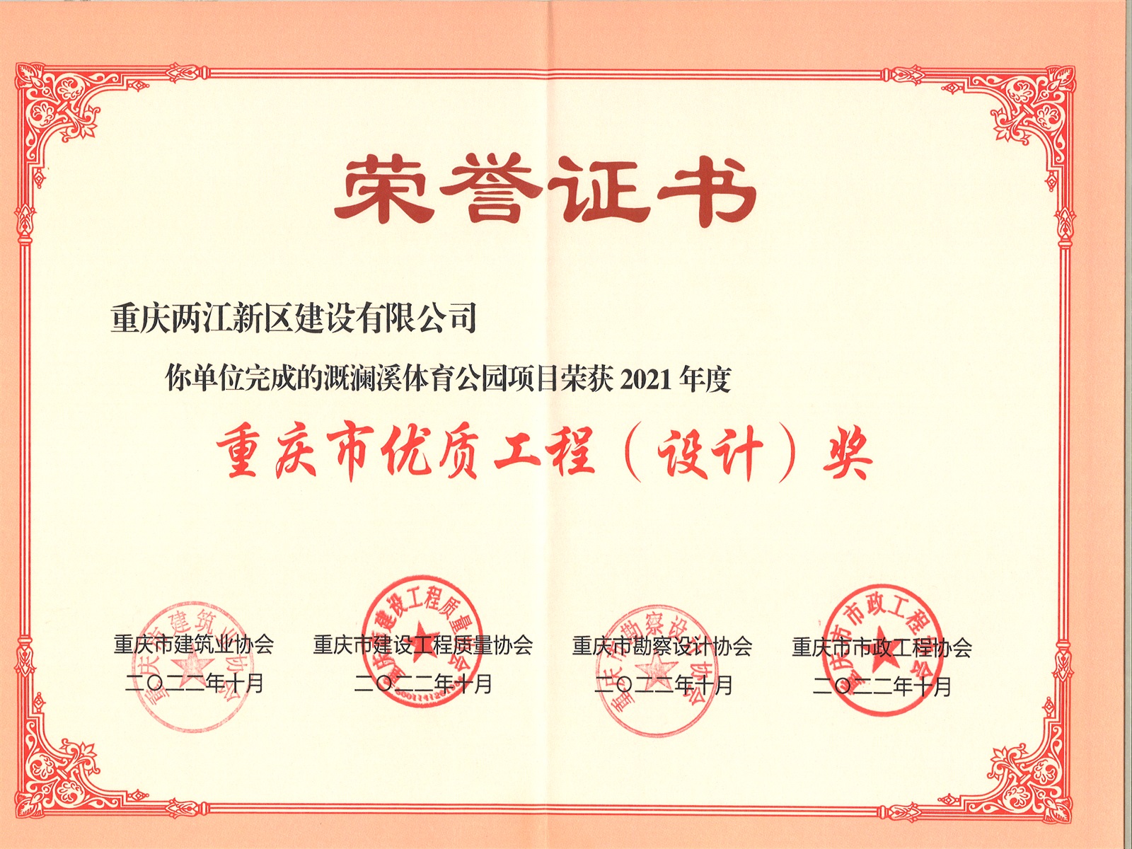 近日,由兩江建設(shè)公司承建的溉瀾溪體育公園項目榮獲2021年度重慶市優(yōu)質(zhì)工程獎,此獎項是重慶市建設(shè)行業(yè)最高榮譽獎,每年評選一次。