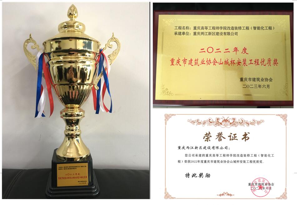 近日,由兩江建設(shè)公司承建的重慶高等工程師學(xué)院改造裝修工程(智能化工程)榮獲2022年度重慶市安裝工程最高獎(jiǎng)項(xiàng)——山城杯安裝工程優(yōu)質(zhì)獎(jiǎng)。