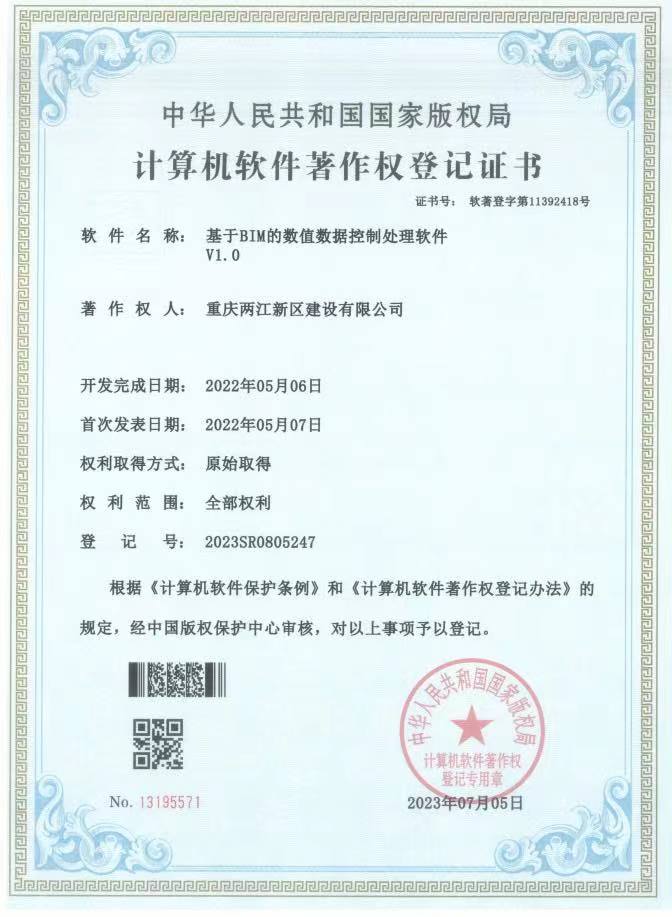 兩江建設(shè)公司首獲國家計算機軟件著作權(quán)