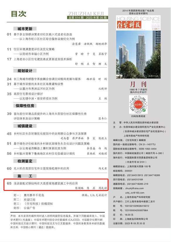 近日,由國家住建部主管,住建部科技與產(chǎn)業(yè)化發(fā)展中心、上海市房地產(chǎn)科學研究院主辦的學術(shù)性期刊——《住宅科技》刊發(fā)了由重慶兩江新區(qū)建設有限公司副總工程師、教授級高工陳閣琳牽頭完成的《淺談裝配式鋼結(jié)構(gòu)在大高差坡地建筑施工中的應用》論文。