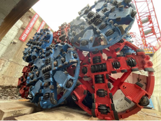 據(jù)了解,“掘進號”頂管機首次采用“六刀盤+六滾筒”復(fù)合破巖技術(shù),總裝機重量約1000噸、主頂推力10300噸、中繼間推力7000噸,斷面開挖寬10.42米、高7.57米,斷面開挖覆蓋率達100%,具備強大的硬巖掘進能力,能在復(fù)雜地質(zhì)條件下實現(xiàn)高效、穩(wěn)定的隧道施工。與傳統(tǒng)的圓形盾構(gòu)機相比,“掘進號”頂管機因大斷面矩形、可裝配這兩大創(chuàng)新亮點,為地下隧道和設(shè)施提供更合理的布局空間,使其空間利用率提高20%、輔助人工成本節(jié)約60%,施工效率提升、作業(yè)成本降低的同時,還能適應(yīng)淺覆土、不斷交通,減少城市改造需交通轉(zhuǎn)換帶來的擁堵以及對原有地面、植被的大量破壞。