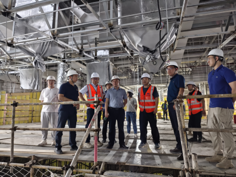 李董先后檢查了項目圖書館、多功能報告廳等區(qū)域的建設進度和安全文明施工情況。檢查過程中,李董分別聽取了項目負責人陶東海介紹本項目投資情況、工程總承包單位上海寶冶項目負責人汪林匯報施工現(xiàn)場建設進度。