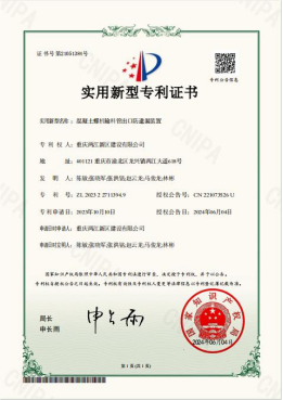 近日,兩江建設(shè)公司又喜獲國家知識產(chǎn)權(quán)局一項(xiàng)實(shí)用新型專利技術(shù)。此實(shí)用新型專利技術(shù)名稱:《混凝土螺機(jī)輸料管出口防遺漏裝置》專利號:ZL202322711394.9,該專利授權(quán)又實(shí)現(xiàn)了兩江建設(shè)公司在科技創(chuàng)新工作方面的新突破。