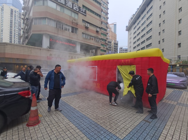 進(jìn)行逃生體驗(yàn)屋演練。在濃煙中的真實(shí)體驗(yàn),有身臨其境的感受,能夠有效讓全體職工在面對火場逃生的心理素質(zhì)得到提高,并懂得疏散的正確的方式,發(fā)生突發(fā)事件時緊急疏散的操作流程和注意事項(xiàng),使職工在發(fā)生緊急情況時能夠迅速有序的撤離,有效避免群死群傷、踩踏事件等安全事故的發(fā)生。