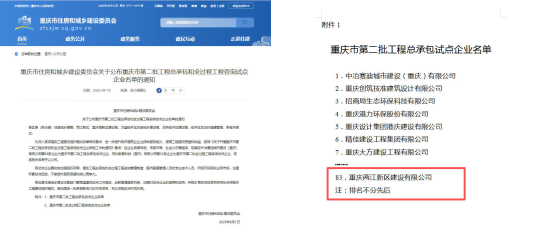 喜報(bào)!兩江建設(shè)公司成功入選重慶市第二批總承包試點(diǎn)企業(yè)