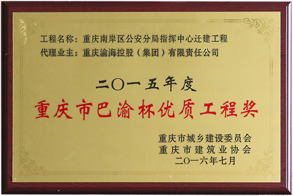 2015年度重慶市巴渝杯優(yōu)質(zhì)工程..
